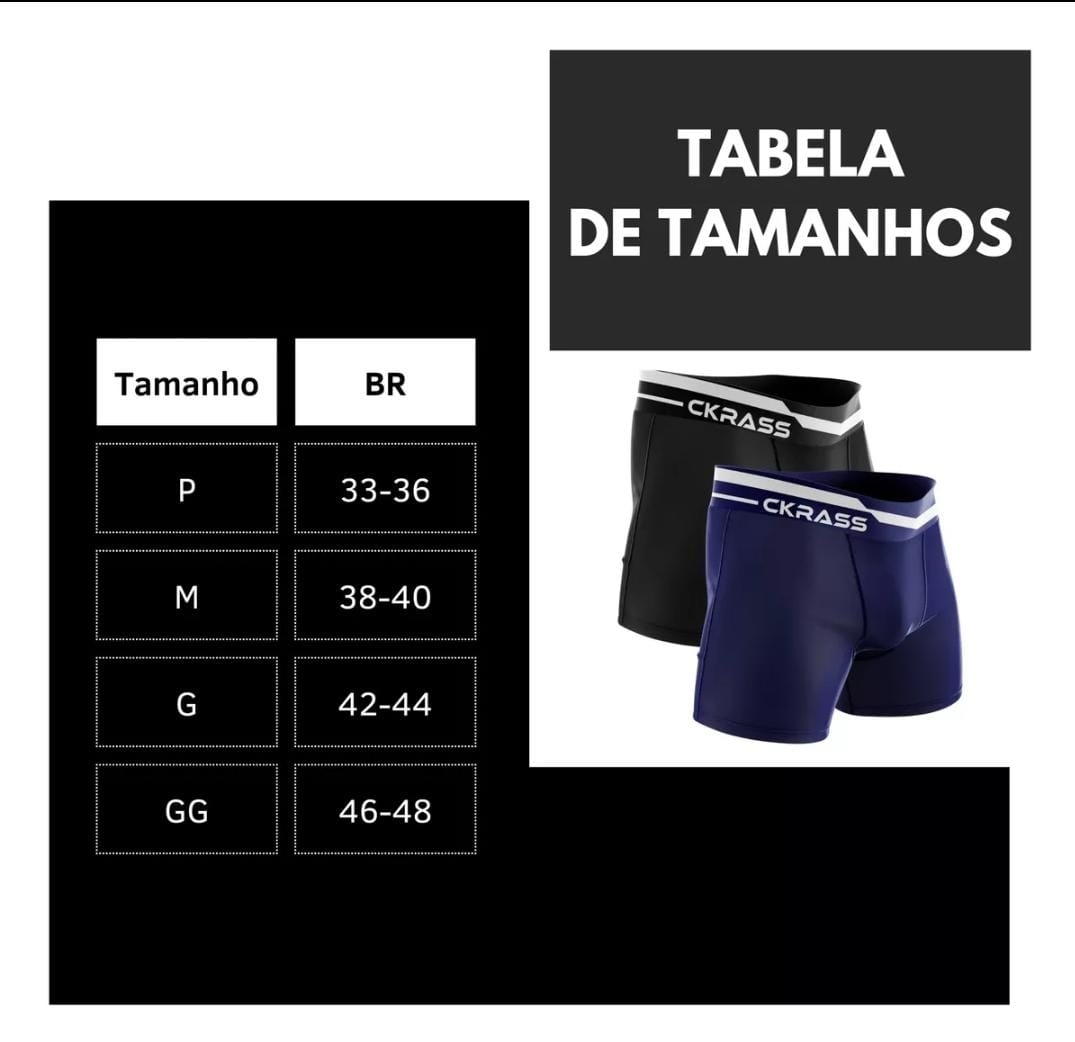 Disponível nos tamanhos P, M, G e GG, o Boxer Ckrass atende diferentes biotipos, oferecendo ajuste seguro e confortável para o dia a dia.